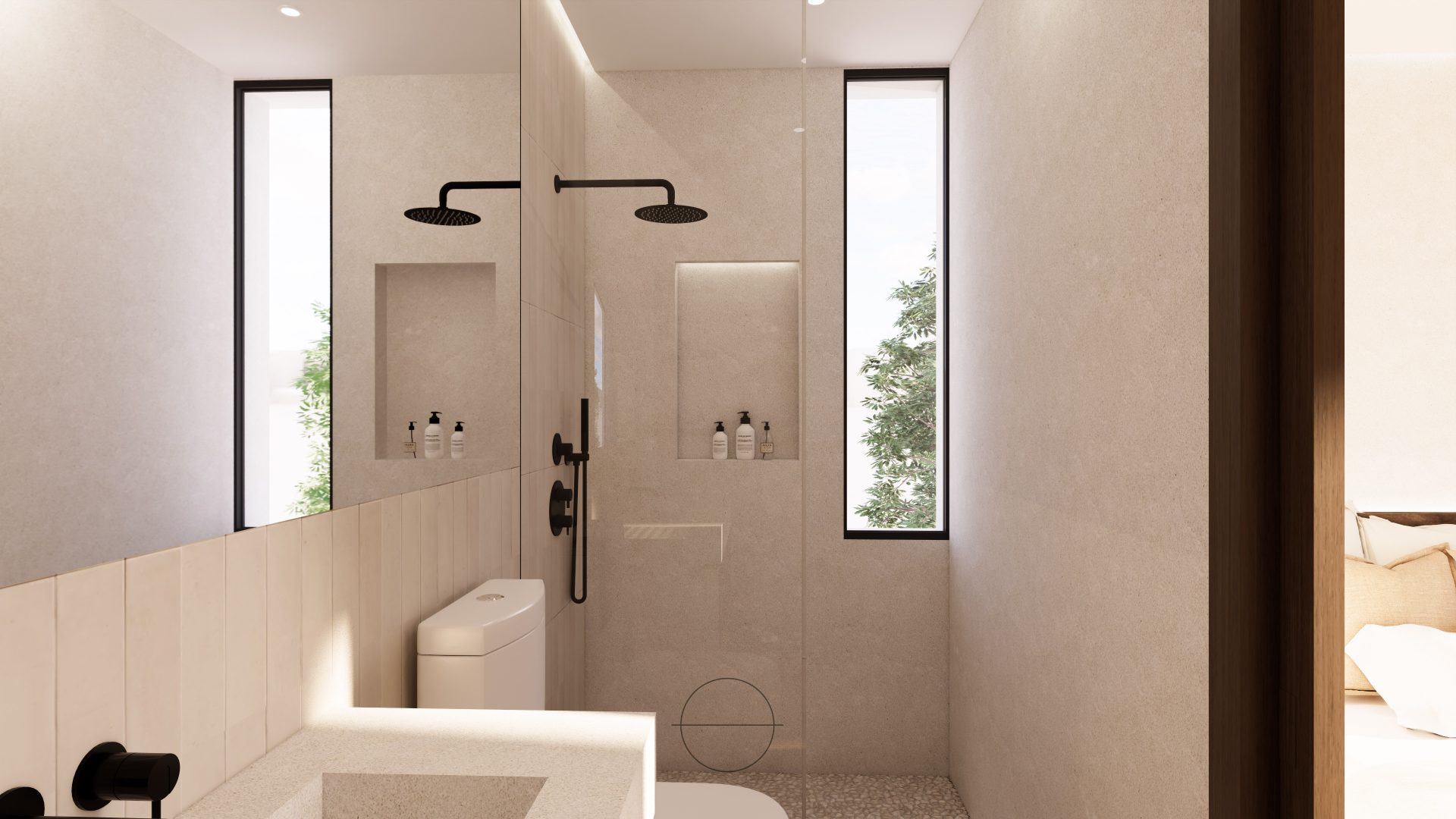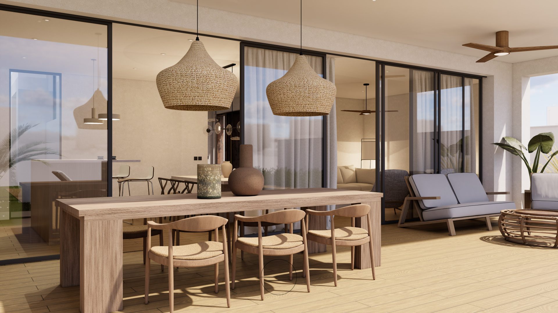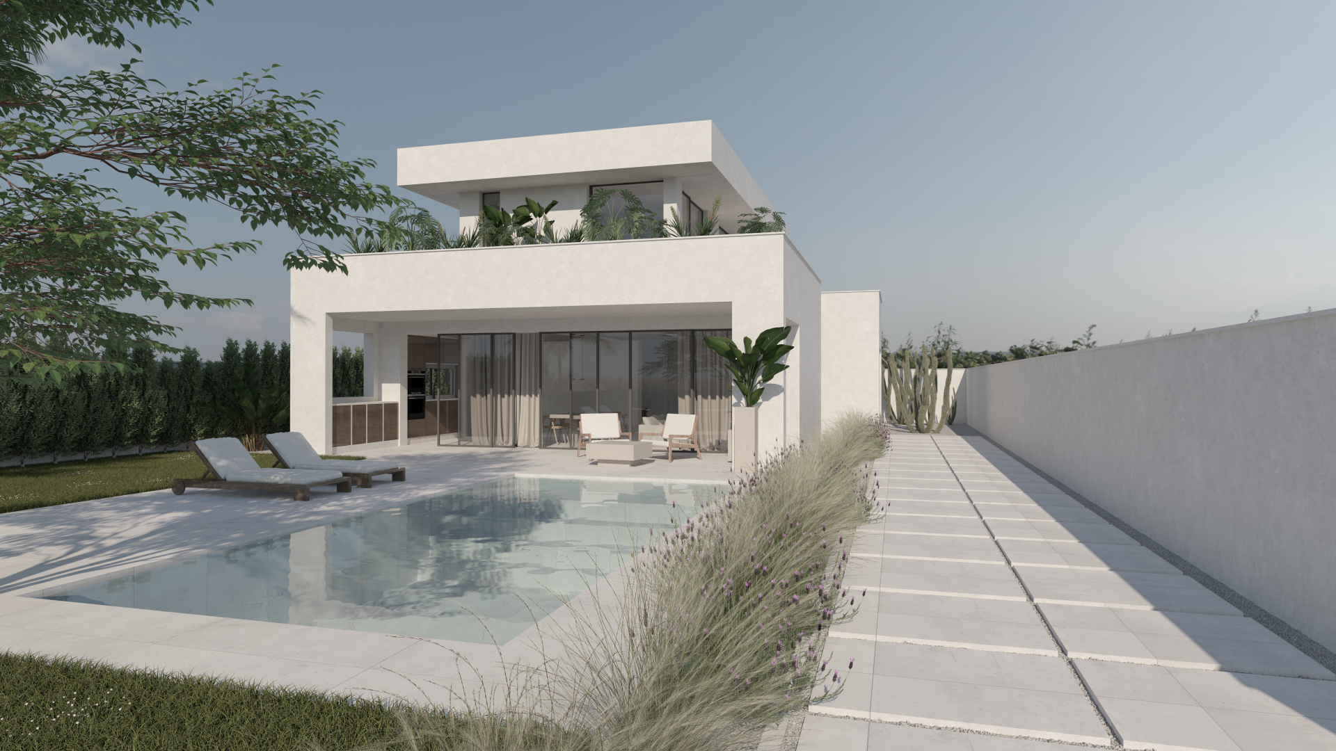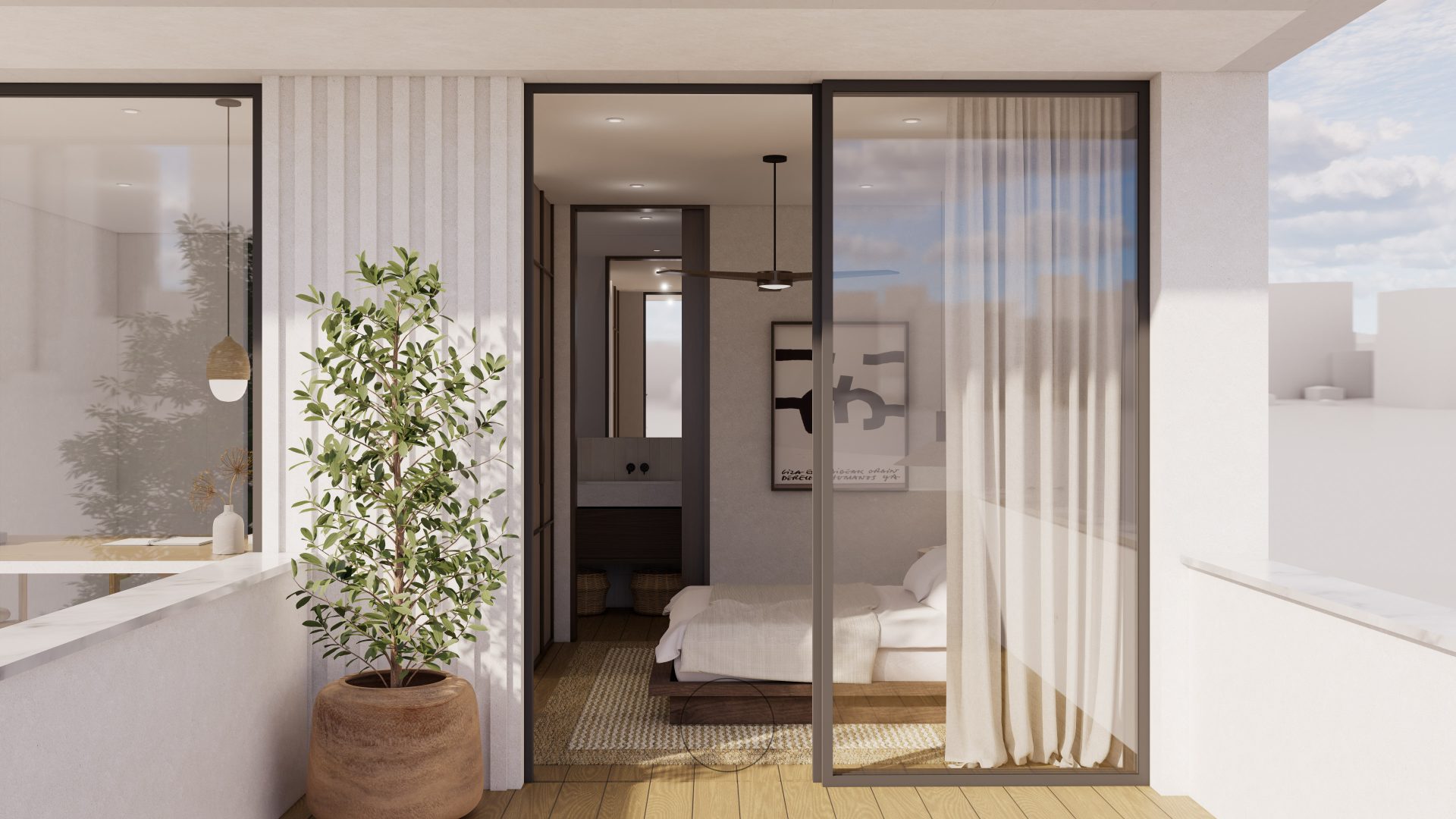 Barcaza, 4 se distingue por su línea moderna y sus volúmenes limpios y blancos, que se combinan armoniosamente con el uso de materiales naturales. Esta elección de materiales no solo aporta calidez y textura al diseño, sino que también refleja un compromiso con la sostenibilidad y la integración en el entorno.