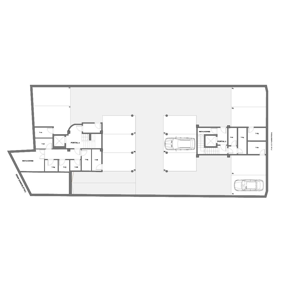 El diseño del edificio se concibe como dos estructuras independientes, cada una con su propio acceso desde la calle correspondiente. Esta estrategia no solo optimiza la funcionalidad del espacio, sino que también permite una mejor distribución de las viviendas. A pesar de esta separación, se ha previsto un garaje en sótano de uso mancomunado, que garantiza la comodidad y seguridad de los residentes.